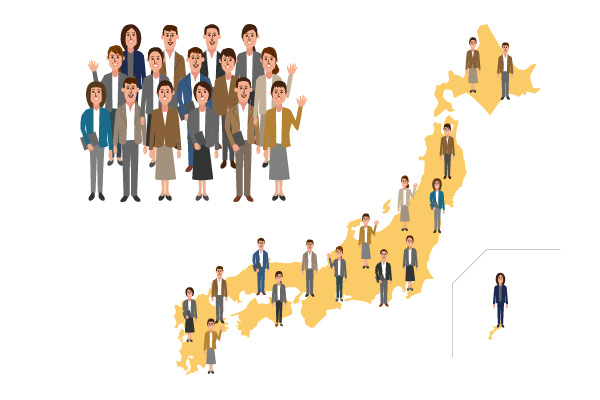首都圏はもちろん北海道から沖縄まで全国にわたる多数のエリアネットワークを活かし、年間平均約700案件の調査に携わっています。フィールドワークの経験が豊富なスタッフと現地の調査員が協力し、地方での調査も円滑に実施。WEBモニターの登録数が少ない地方や年代における調査でも、当社の機縁リクルート網でカバーします。近年、調査ニーズが高まっているシニア層や若年層についても、当社のキャリアとネットワークによって質の高いリクルーティングが可能です。